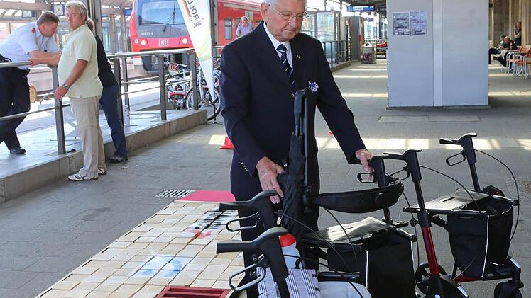 Motto des Tages: "Mit dem Rollator sicher unterwegs" - und zwar am Bahnhof und im Zug. Mit der Bahn geht es von Bamberg nach Lichtenfels, dort ist Zeit für ein Ein- und Aussteigetraining.