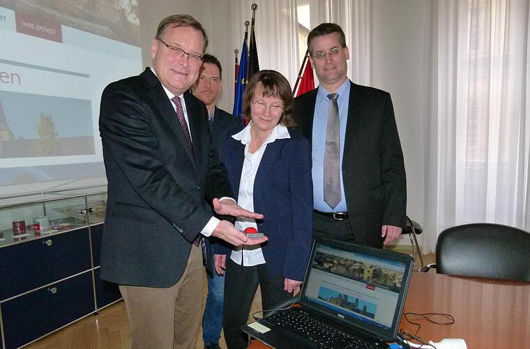 Bei dem feierlichen Akt im Rathaus am Maxplatz waren Finanz- und Stiftungsreferent Bertram Felix, Stiftungsmanagerin Claudia Schelbert und Homepage-Projektleiter Andreas Fischer von der Werbeagentur "medienreaktor" dabei.