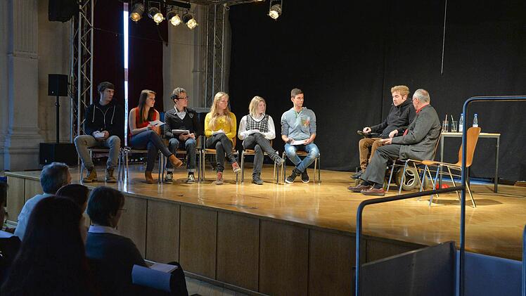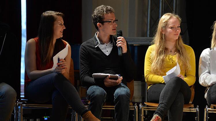 In Hemd und Krawatte, in Jeans und Pulli, Konzertlesung oder Podiumsdiskussion - nicht nur am Montag in Bamberg - immer wieder sitzt der Schauspiel-Student mehr oder weniger freiwillig auf irgendwelchen Bühnen. Als Morgenmuffel steht ihm um zehn Uhr keine leichte Aufgabe bevor: "Tragen Sie doch einmal vor, was Werte für Sie sind", wird er von Matthias Söffler, Lehrer am Franz-Ludwig-Gymnasium, aufgefordert. Ein Vortrag - darauf hat Samuel Koch keine Lust. Er möchte lieber ein bisschen mit den Schülern plaudern. Er duzt. Und er dürfte auch geduzt werden. Aber das kommt nicht so recht bei den Schülern an, die mit Notizblock und Stift bewaffnet da sitzen, um ihm intelligente Fragen zu stellen.