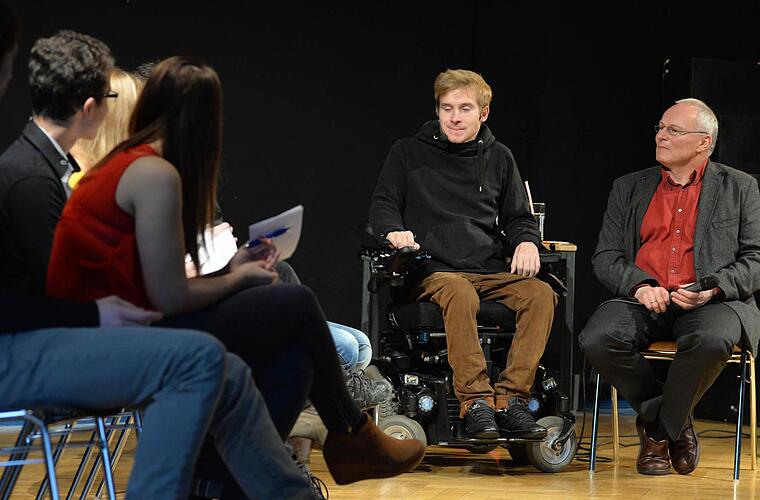 Was sich gar nicht so einfach gestaltet. Noch schwieriger scheint den 17- bis 18-Jährigen das Zuhören zu fallen. Sie fragen: Woher nimmst du deine Lebensfreude? Deinen Lebensmut. Deine Energie. Die Kraft am Leben. Wahrlich, es wäre vermessen zu behaupten, es gäbe eine intelligentere Frage. Aber es ist schon erstaunlich, wie Samuel Koch immer wieder gelassen und mit modellierten Antworten auf die ein und dieselbe Frage eingeht.
