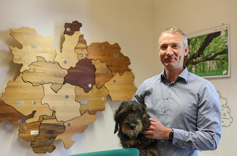 Es ist alles noch ganz neu für Dackel Jünni in der Scheßlitzer Geschäftsstelle der Forstwirtschaftlichen Vereinigung Oberfranken (FVO). Aufgeregt huscht er durch den Flur, schnuppert mal hier und mal dort. Erst zum April hat Herrchen Jörg Ermert hier den Posten als Geschäftsführer übernommen und Jünni seinen Platz neben dem Schreibtisch bezogen. Den hat er nun fluchtartig verlassen - zu viel Trubel beim Pressetermin.