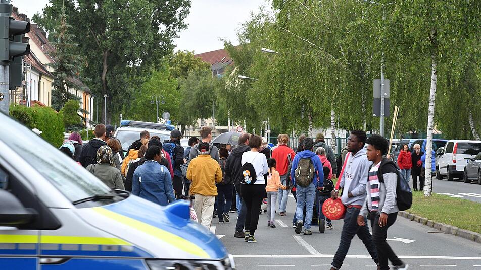 200 Menschen folgen dem Aufruf eines linken Bündnisses und protestieren am Samstag in Bamberg knapp drei Stunden gegen die Aufnahmeeinrichtung.