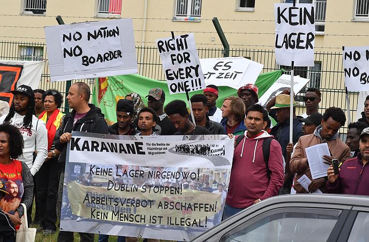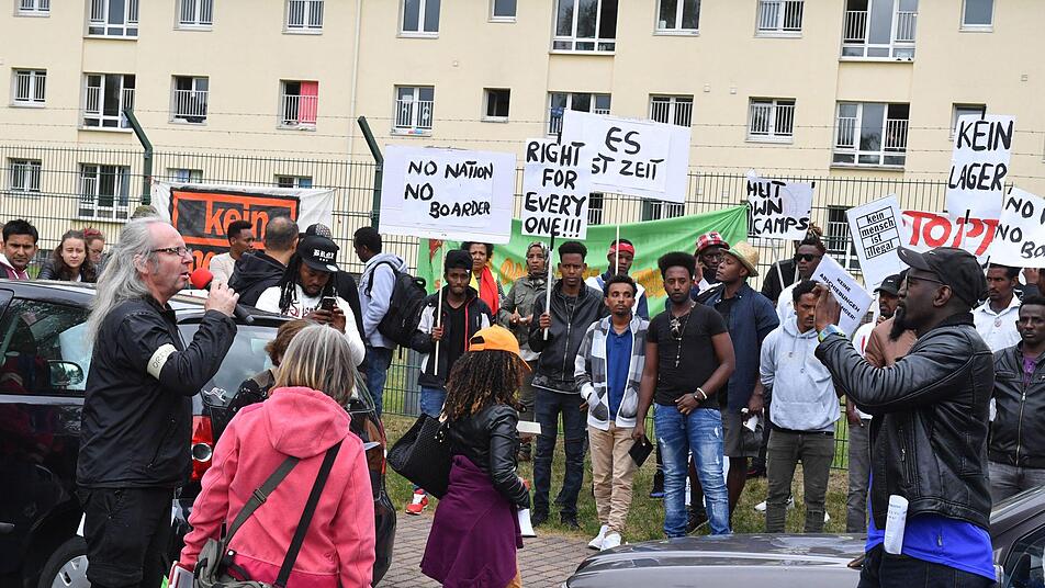 Es brodelt an der Birkenallee im Osten Bambergs, als Samstagnachmittag ein Teil der von einem linken Bündnis angelockten Bewohner der Aufnahmeeinrichtung Oberfranken (AEO) sowie eine überschaubare Anzahl sympathisierender Einheimischer aus Nah und Fern ihre Ablehnung der deutschen Asylpolitik demonstrieren: "Asylrecht für alle Unterdrückten", wird da gefordert. "Kein Lager - nirgendwo, Dublin stoppen, Arbeitsverbot abschaffen!" lauten die Parolen.