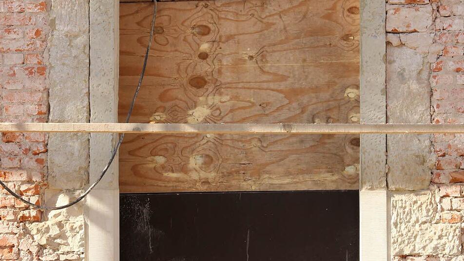 "Schatz" unter dem Fassadenputz So hatte niemand geahnt, welche wertvollen Sandsteingewände unter dem Fassadenputz verborgen waren. Nachdem man ihn abgeschlagen hatte, konnte man gar nicht anders, als "diesen Schatz" hervorzuheben. Bürgermeister Andreas Schlund (CSU) erklärte, dass man in bestimmten Situationen den Mut zu einem Schnellschuss haben müsse.