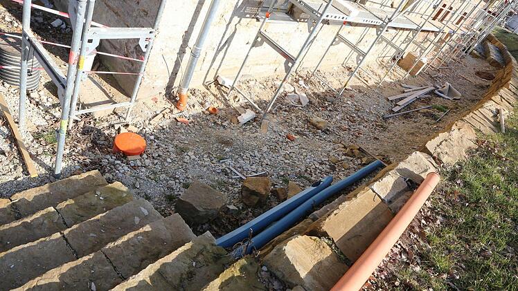 Das Hangwasser wird nun abgeschlagen und unter dem Schloss in ein Reservoir für die Gartenbewässerung geleitet. Da kommen rasch Mehrkosten in sechsstelliger Höhe zusammen. Plaß vermutet, dass 700.000 Euro zu hoch gegriffen sind, aber mehr als vier Millionen Euro werde die Schlosssanierung wohl doch kosten. Das Schloss sei es wert. Weit und breit gebe es nichts Vergleichbares. Der Architekt verweist im Übrigen darauf, dass etwa bei den Zimmerer-, Dachdecker und Verputzarbeiten Einsparungen gegenüber der Kalkulation erreicht werden konnten.
