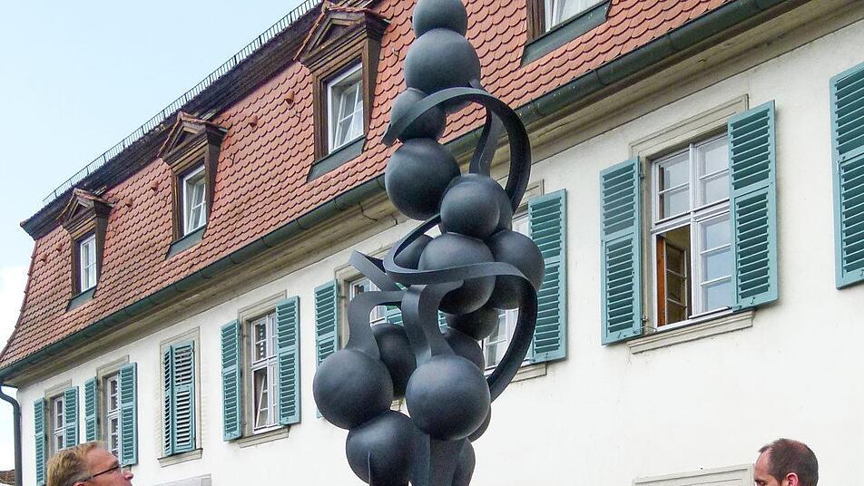 Bildhauer Rui Chafes half bei der Enthüllung seines Werks "Langsamer Traum" vor der Bischofsmühle in Bamberg.