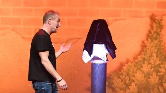 Soweit, so erwartbar. Dann funkt der Shakespeare aber wirklich noch rein ins Programm in Form eines sprechenden, sächselnden Totenkopfs. Der behauptet, er habe das alles gar nicht geschrieben: "Das war mein Bruder, der Heiko. Der war übrigens Legastheniker." Kurzer, netter Nonsense-Dialog