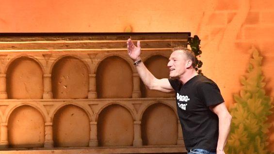 Und dann wird es direkt auch nicht eben literarisch, Shakespeare-mäßig, sondern politisch: "Ein Franke ist Ministerpräsident!" Tatsächlich jubelt das Publikum, als wäre das ein Verdienst. Zum Glück setzt Müller noch nach: "Die Not muss wirklich groß sein." Der Rest dieser kleinen tagesaktuellen