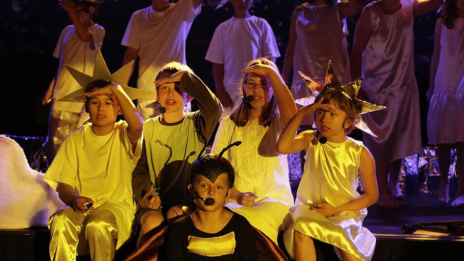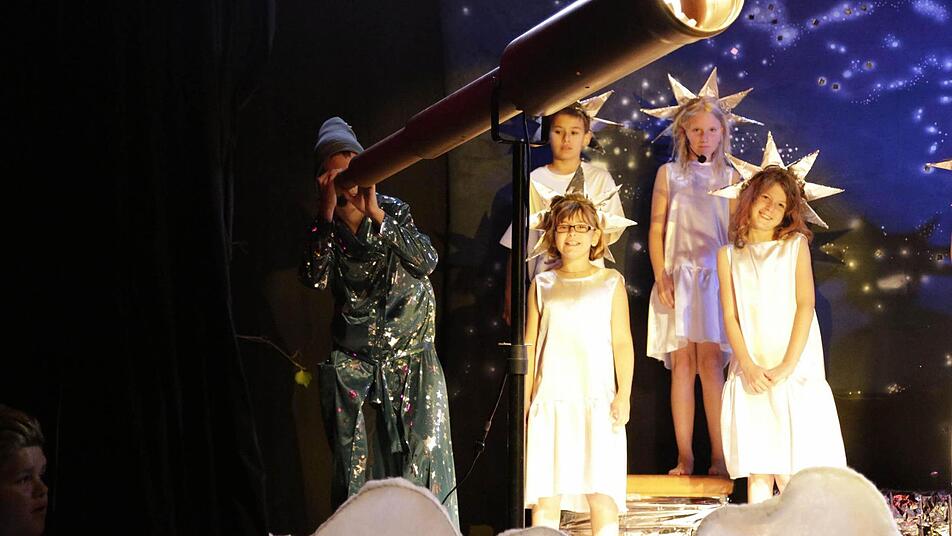 Schüler der Don-Bosco-Schule Stappenbach haben die Geschichte von "Peterchens Mondfahrt" als Musical aufgeführt. Bühnenbild und Kostüme haben sie selbst gebastelt - und als Sternchen gegen den Mondmann gekämpft.