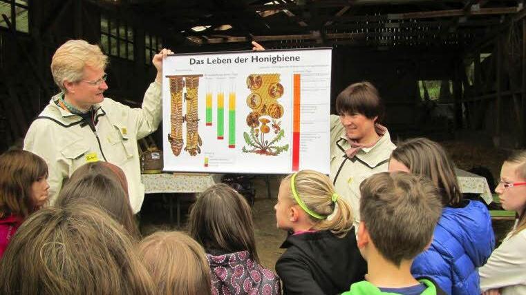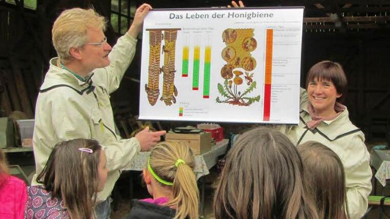 Von der Grundschule ans Gymnasium "Weiter fliegt die Schulbiene anschließend an die Martinschule, das E.T.A-Hoffmann-Gymnasium und die Naturschutzgruppe der Offenen Behindertenarbeit der Lebenshilfe", so Ilona Munique, die mit Reinhold Burger als Tandempartner arbeitet und zuvor schon Erfahrungen mit zwei Hirschaider Schulklassen und Teilnehmern einer VHS-Führung sammelte.