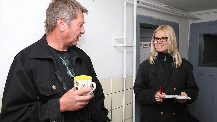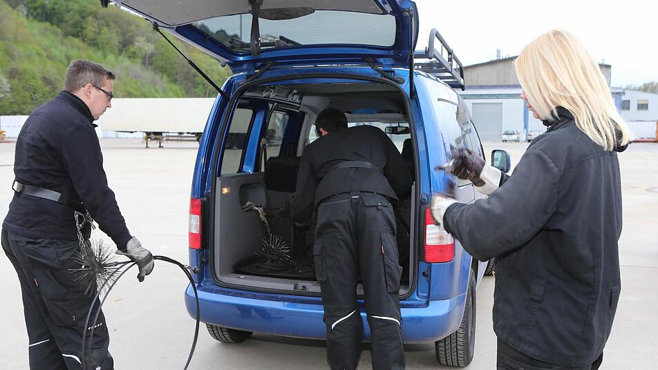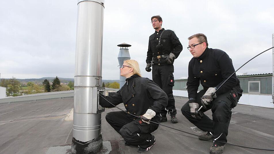 Das trifft auch auf meine nächste Station zu. Im blauen Hochdach-Kombi der "Schlotis" düsen wir nach Weiher, im Radio läuft "Country Roads." Dominik singt mit. "Bayern 1 geht immer", sagt er. Dann ruft er plötzlich: "Ach, der Raab!" Hoch die Hand, winken. Überhaupt winken die Zwei daunernd. Egal, wo wir hinkommen, man kennt sich. Dominik sagt: "Des is ja des Schöne an dem Beruf, da kennst a Haufen Leut." - Zumindest in den Gemeinden Viereth-Trunstadt und Bischberg, dem Kehrbezirk der beiden Gesellen.