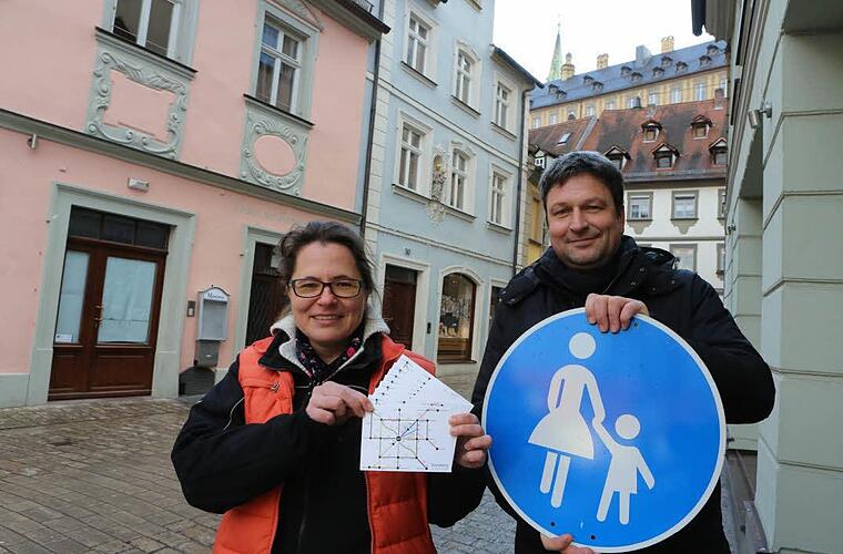 Einen Fußgängerstadtplan ließen sich Markus Schäfer und Yvonne Slanz einfallen, um Autofahrern in der Domstadt Beine zu machen. Natürlich gingen die beiden Straßenmanager aus Bambergs ältestem Stadtteil flotten Schrittes mit gutem Beispiel voran, wie sie berichteten.