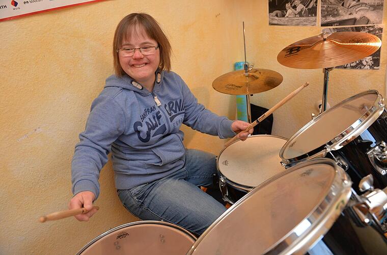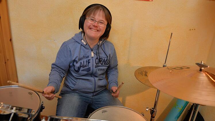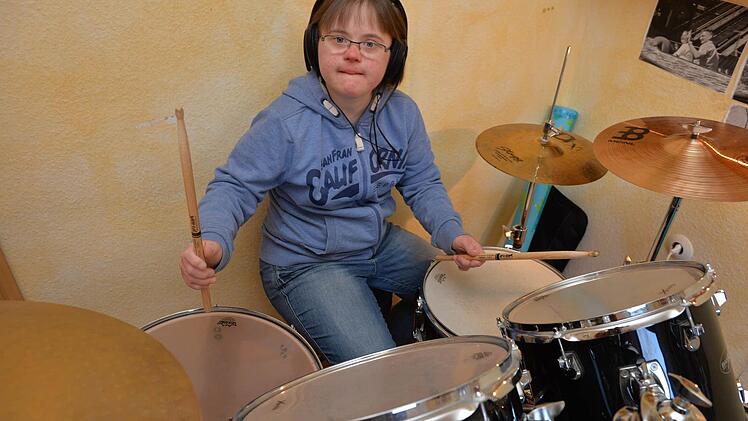 Im ersten Stock scheppert's gewaltig. Anna Langlouis lässt es am Schlagzeug wieder ordentlich krachen: "Ich mag es rockig", sagt die 24-Jährige, die wir zu Hause bei ihren Eltern besuchen. Stundenlang haut die Bambergerin an manchem Tag auf die Pauke, um für Auftritte mit ihrer Band zu üben. Was Tobi, dem flauschigen Stubentiger der Familie, gar nicht gefällt. Glücklicherweise ist Anna oft auf Achse, die beispielsweise auch Basketball spielt. Wie etliche Gleichaltrige interessiert sie sich in ihrer Freizeit für vieles. "Ich bin so wie alle anderen - nur etwas anders", sagt die Fränkin, die wir zum Welt-Down-Syndrom-Tag porträtierten. Denn auch bei Anna Langlouis kommt das Chromosom 21 in jeder Körperzelle dreimal statt zweimal vor - wie bei rund 50 000 anderen Frauen, Männern und Kindern allein in Deutschland.
