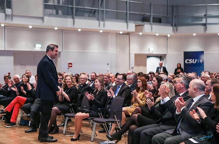 Und was zu diesem Glück gehört, feuerte der Ministerpräsident gleichsam ab: Gerechtigkeit für Leistungswillige und für die weniger Leistungsstarken. Abschaffung des "Soli" für alle. Weniger Bürokratie, also auch keine Tonnen an Kassenbons. Keine ideologische Familienarbeit: "Erziehung ist Sache der Eltern und nicht die des Staates." Schöpfung bewahren und gestalten: "Ich bin nicht grün, sondern weiß-blau und rot-weiß!" Klimaschutz ist kein Modethema, sondern Notwendigkeit und Aufgabe der CSU, die schon 1970 das erste Umweltministerium in Bayern begründete. "Oma und Opa sind absolute Helden der Familien und keine Umweltsäue. Wir müssen die Jugend wertschätzen, ohne sie gibt es keine Zukunft." Die Landwirtschaft brauche mehr Verständnis, sie gehöre zum Kernbestand von Bayern.