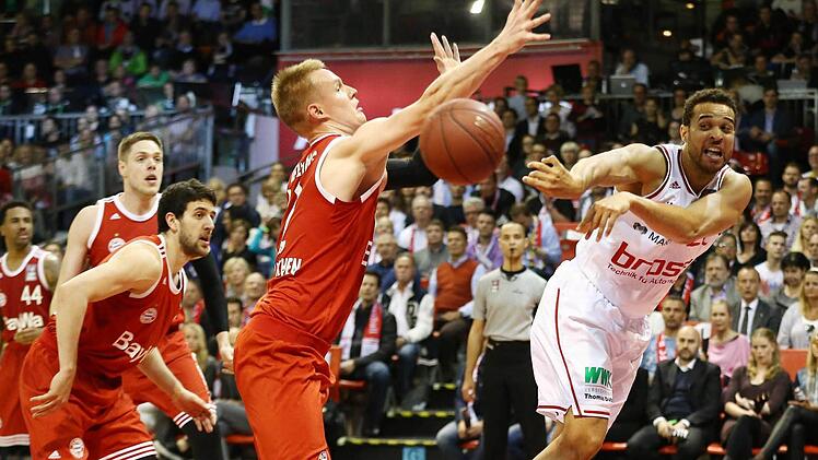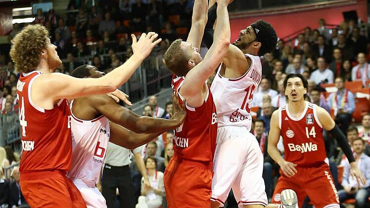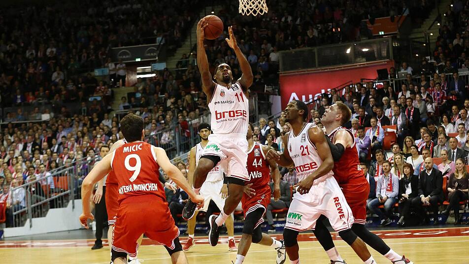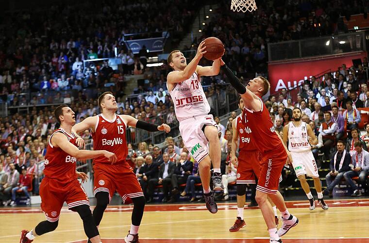 Gesamtwurfquote München 55 Prozent (22 Treffer/40 Versuche), Bamberg 58 (21/36)