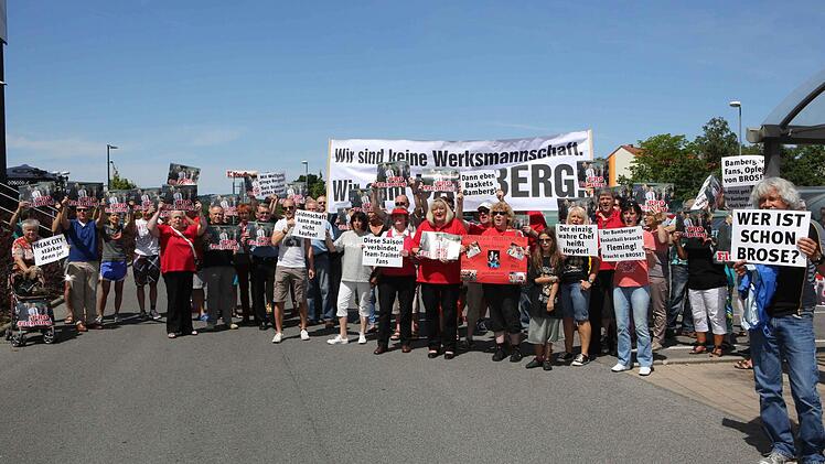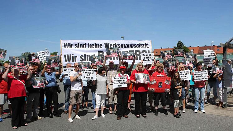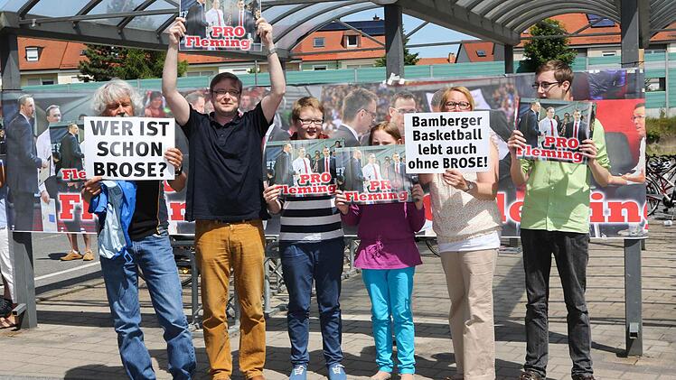 Auf Transparenten waren Slogans zu lesen wie "Wer ist schon Brose?", "Der Bamberger Basketball braucht Fleming! Braucht er Brose?" oder "Mit Wolfgang ging´s bergauf! Mit Stoschek bergab!"