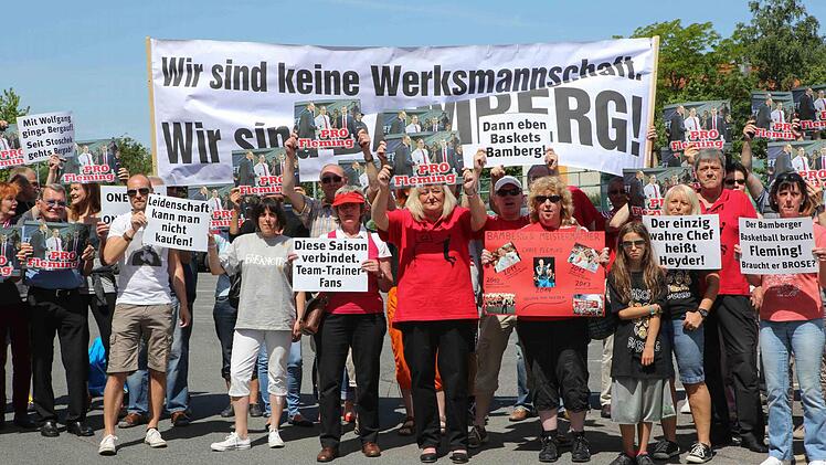 "Wir haben lange und geduldig auf eine Entscheidung des Aufsichtsrates gewartet. Mit der spontanen Kundgebung wollen wir ihm auf die Sprünge helfen", erläuterte deren Initiator Oliver Meißner, Fanclubmitglied des Clubs "Faszination Basketball". Zudem wollten die Fans Druck machen und zeigen, dass sie mit der Entscheidung einer möglichen Trainerentlassung nicht einverstanden seien. Schließlich habe Fleming in vier Jahren vieles erreicht in Bamberg. "Nur weil mal eine Saison nicht so läuft, kann man doch nicht gleich Tschüss sagen", wetterte Meißner. Auch rede Stoschek immer nur von seinem Geld, das er investiere. Dabei entgehe ihm aber völlig, wie viel Zeit und Geld die Fans investieren.