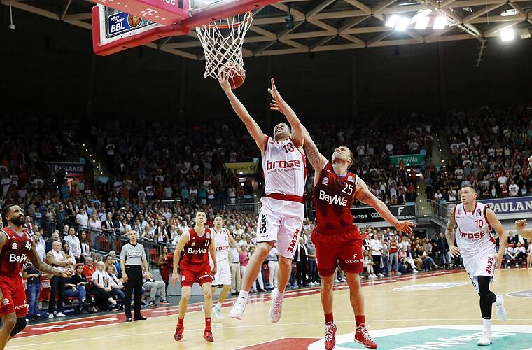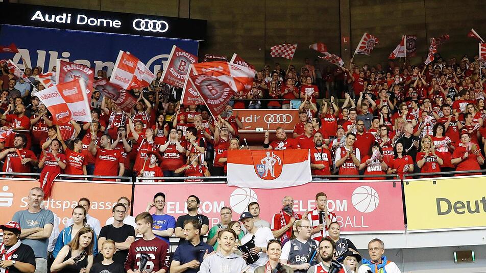 400 Bamberger Zuschauer feierten am Ende ausgelassen einen hart erkämpften 80:76-Sieg des Brose-Teams bei den Münchner Bayern. Nach dem zweiten Halbfinal-Erfolg gegen den Erzrivalen kann der deutsche Meister am Sonntag (17 Uhr) in der heimischen Frankenhölle den Einzug in die Finalserie bereits perfekt machen.