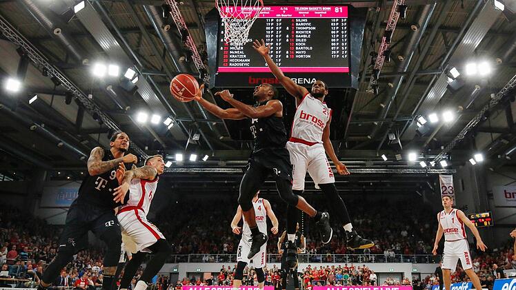 Den Bonnern war von der ersten Sekunde an anzumerken, dass sie die letzten Pleiten vergessen machen wollten. Sie demonstrierten in der ersten Halbzeit ihre Offensivstärke, wobei vor allem der Ex-Bamberger Ryan Thompson nach seiner Nullnummer gegen Oldenburg aufdrehte. Die Gastgeber hatten in der Verteidigung ihre liebe Not, den sehr solide auftretenden Tabellensiebten um ihren Wirbelwind Josh Mayo zu stoppen. Weil sich die Telekom Baskets im ersten Viertel keinen einzigen Ballverlust geleistet hatten - die Gastgeber dagegen vier - , lagen sie mit 25:22 in Front.