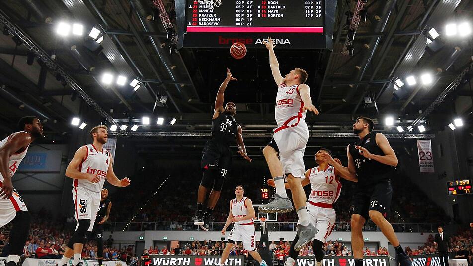 Nach einem offensiv geprägten dritten Viertel ging's mit einem 72:73-Rückstand in den Schlussabschnitt. Daniel Theis holte mit sechs schnellen Punkten zwar die Führung zurück, doch Mayo, der noch keine Sekunde Pause bekommen hatte, drehte weiter auf (78:81). Mit einem 81:81-Gleichstand ging es in die spannenden letzten drei Minuten. 63 Sekunden vor dem Ende lag der hohe Favorit mit 88:92 hinten, weil er gegen Mayo & Co. einfach keinen Stopp hinbekam. Theis nach Offensiv-Rebound per Dunking und McNeal mit einem Drei-Punkte-Spiel ließen die Brose Arena beben. Nach einem taktischen Foul traf Dileo zwar nur einen Freiwurf, doch beim letzten Angriff fing Theis das Anspiel von Causeur nicht - die 92:93-Niederlage war besiegelt.
