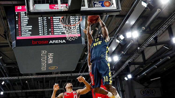 (29:18, 18:26, 17:23, 22:26) Bamberg Rice (33 Punkte/9 Dreier), Rubit (19), Alexander (8), Harris (7), Zisis (6), Stuckey (6/1), Heckmann (4), Taylor (3), Schmidt, Olinde Oldenburg Cummings (23/2), Boothe (18/2), Paulding (15/2), Massenat (13/1), Mahalbasic (11/1), Stojanovski (7), Tadda (3/1), Keßen (2), Schwethelm (1)