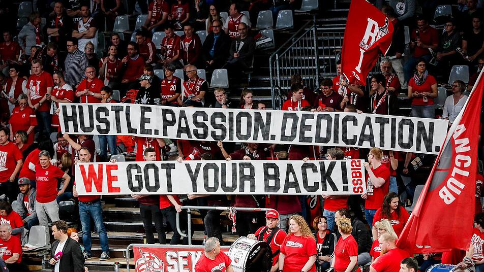 SR Madinger, Barth, Hack Zuschauer 5998 Gesamtwurfquote Bamberg 49 Prozent (27 Treffer/55 Versuche), Oldenburg 54 (33/61)