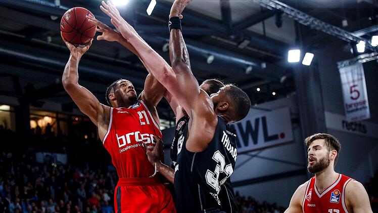 Larry Gordon (3), Siyani Chambers, Max Montana, Max Landis, John Bryant (alle 2), Benjamin Lischka und Brandon Thomas (je 1) durften meist mutterseelenallein an der 6,75-Meter-Linie abdrücken. Doch auch die Bamberger stellten in Halbzeit 1 ihr offensives Potenzial (Trefferquote aus dem Feld 53 Prozent/7 Dreier) unter Beweis und kämpften sich nach deutlichen Rückständen (24:34, 43:51) immer wieder zurück. Tyrese Rice und Stevan Jelovac (beide 12 Punkte) und Nikos Zisis (9) waren dabei die gefährlichsten Brose-Schützen.