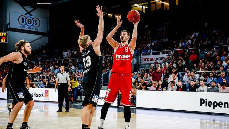 53 Punkte standen für das Brose-Team zur Pause auf der Anzeigetafel, doch das war zu wenig. 13 Dreier (Trefferquote 76 Prozent) versenkten die Gießen 46ers, die sich in der ersten Halbzeit in einen Rausch gespielt hatten, aber dennoch nur mit einer Vier-Punkte-Führung in die Kabine gingen.