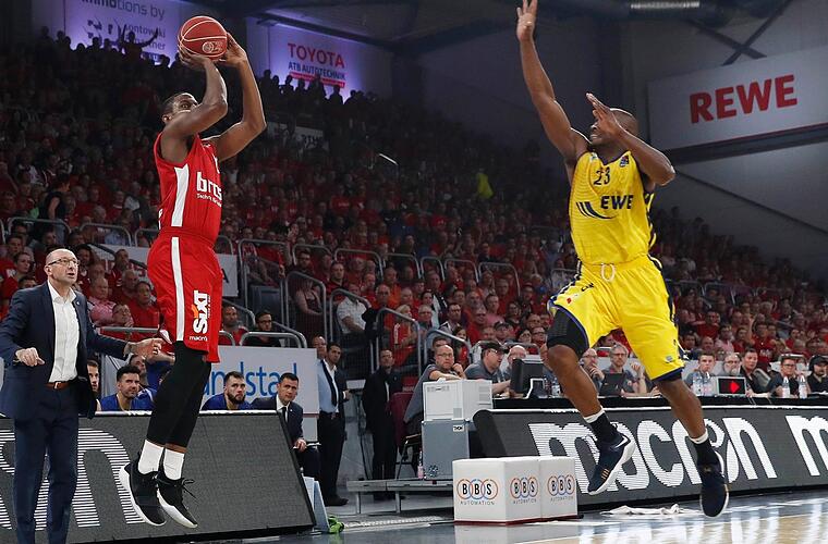 Der deutsche Meister setzt zum Finalauftakt gleich einmal ein dickes Ausrufezeichen: Mit 96:60 (43:22) fertigte Brose Bamberg die EWE Baskets Oldenburg am Sonntag ab. Dem Überraschungs-Finalisten war nach dem Husarenstreich am Donnerstag in Ulm die Müdigkeit deutlich anzumerken. Sollte die Trinchieri-Truppe auch am Mittwoch (20.30 Uhr) in Oldenburg ihrer Favoritenrolle gerecht werden, könnte schon am nächsten Sonntag (17.15 Uhr) in Freak City der neunte Meistertitel gefeiert werden.