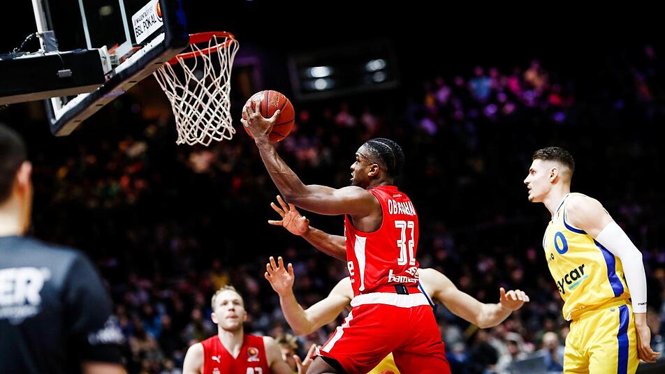 erfolgreich versenkt ... und Bryce Taylor kann immerhin noch - wie früher in München - Dreier treffen .