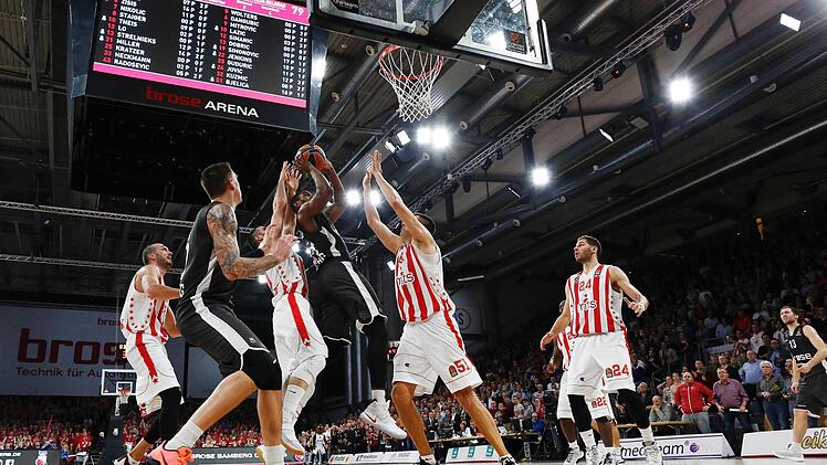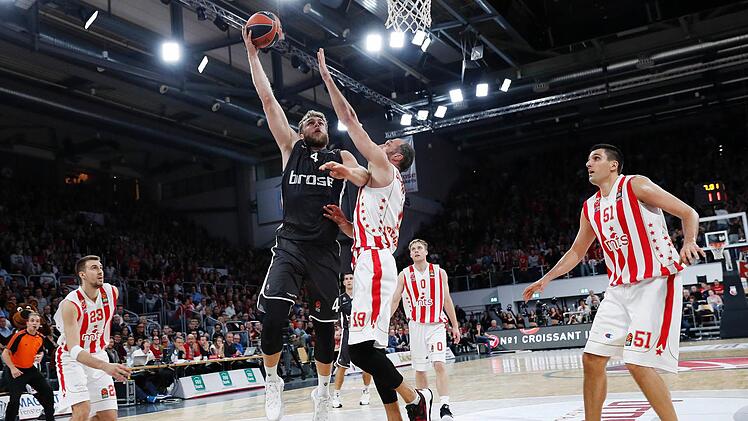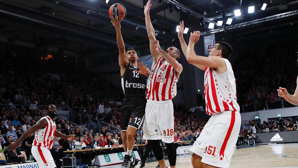 Wieder hatten die Bamberger Brose-Basketballer in einem Krimi den letzten Angriff - und wieder wurde er nicht zum Sieg genutzt. Sie kassierten im vierten Euroleague-Heimspiel die zweite Niederlage und laufen nach sieben Spieltagen in der europäischen Königsklasse mit einer Bilanz von 2:5 Siegen der Musik etwas hinterher. Im Spiel der Woche, das in insgesamt 102 Ländern in Europa, Asien, Australien und in Afrika live zu sehen war, musste sich der deutsche Meister am Dienstagabend dem serbischen Starensemble von Roter Stern Belgrad hauchdünn mit 78:79 (29:38) geschlagen geben. Am Donnerstag (20.30 Uhr) wartet auf die Trinchieri-Truppe bei Baskonia Vitoria eine weitere hohe Hürde.