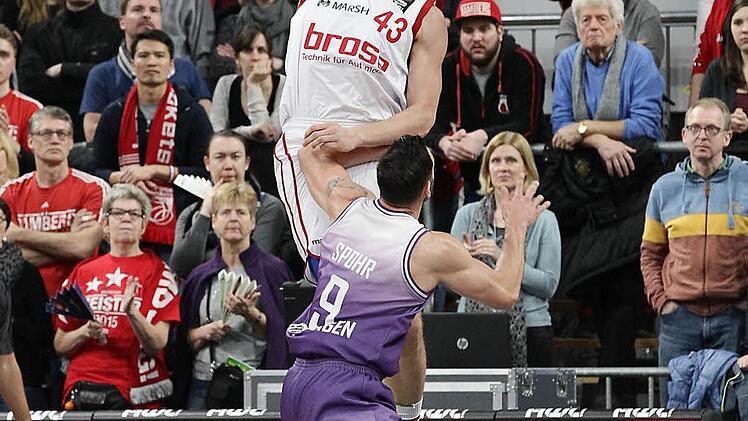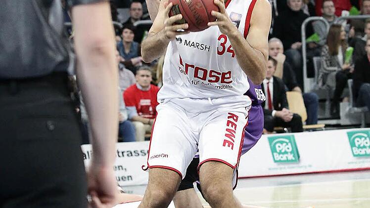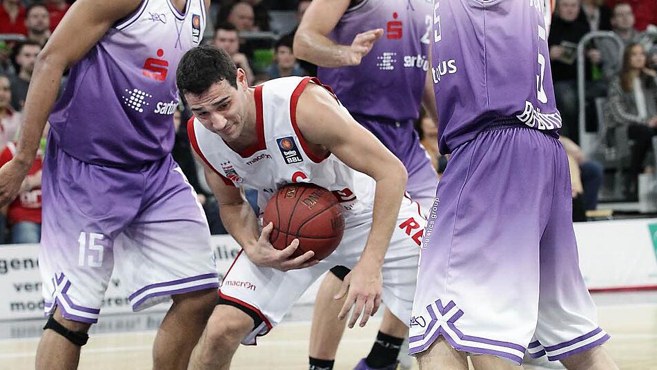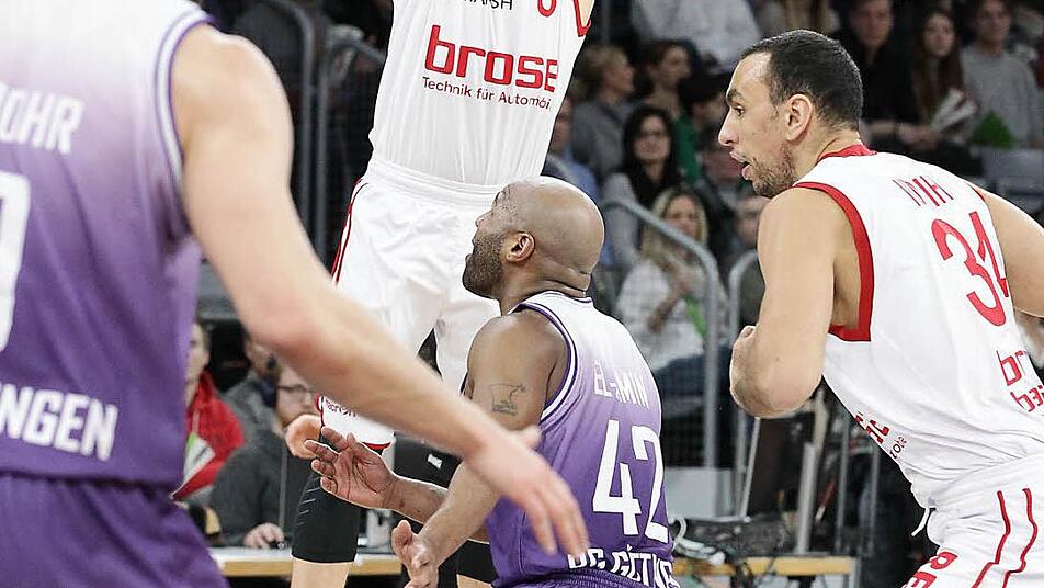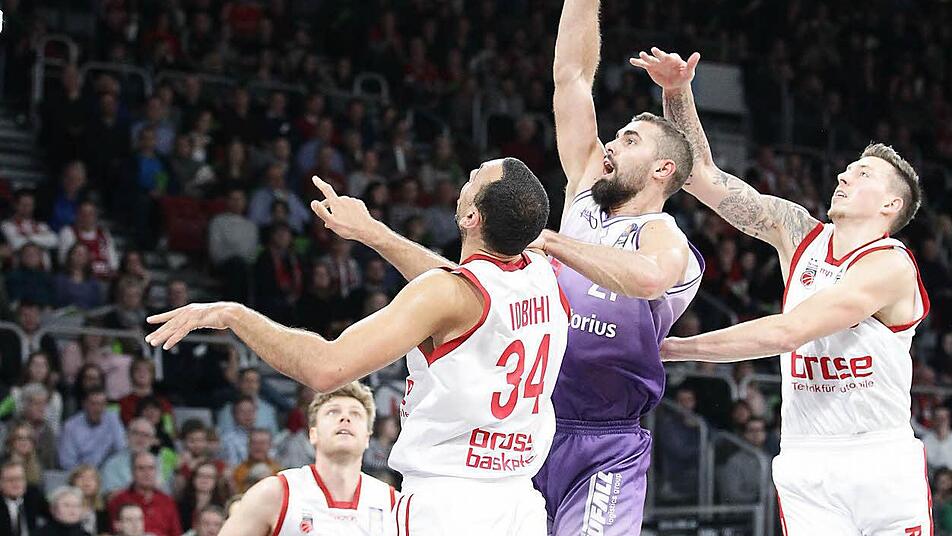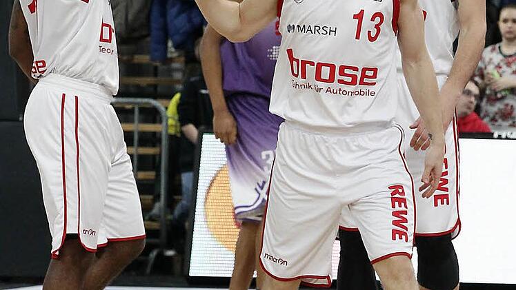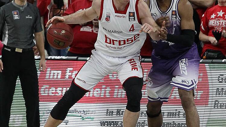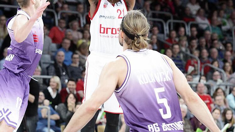 Der Scharfschütze der Brose Basket Lucca Staiger wurde am Samstag Vater und war tags darauf beim 113:92-Sieg über Göttingen mit 22 Punkten bester Werfer.