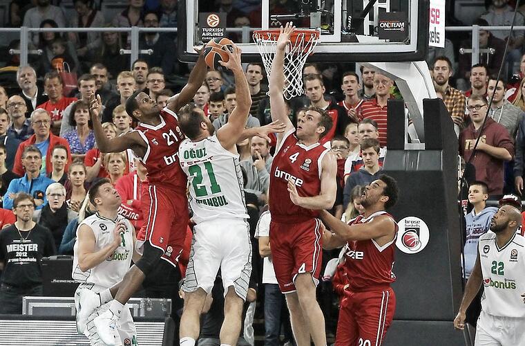 (20:13, 16:14, 31:29, 19:20) Bamberg Strelnieks (13 Punkte/3 Dreier), Miller (13/2), Wanamaker (11), Harris (11), Zisis (10/1), Melli (8), Staiger (8/1), Theis (8), Olaseni (4), Heckmann, Idbihi Istanbul Bjelica (16/1), Arslan (12/2), Gordon (12/2), Cetin (12/3), Slaughter (6), Preldzic (5/1), Redding (5), Erden (4), Savas (2), Harangody (2), Turen SR Lamonica (Italien), Boltauzer (Slowenien), Koljensic (Montenegro) Zuschauer 6800 (ausverk.) Gesamtwurfquote Bamberg 54 Prozent (34 Treffer/63 Versuche), Istanbul 52 (24/46) Dreierquote Bamberg 38 Prozent (8/21), Istanbul 50 (9/18) Freiwurfquote Bamberg 91 Prozent (10/11), Istanbul 79 (19/24) Rebounds Bamberg 27 (19 defensiv/8 offensiv), Istanbul 24 (20/4) Ballgewinne/-verluste Bamberg 6/15, Istanbul 6 /19 Assists Bamberg 19 / Istanbul 16 Fouls Bamberg 28 / Istanbul 19