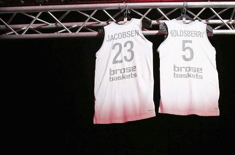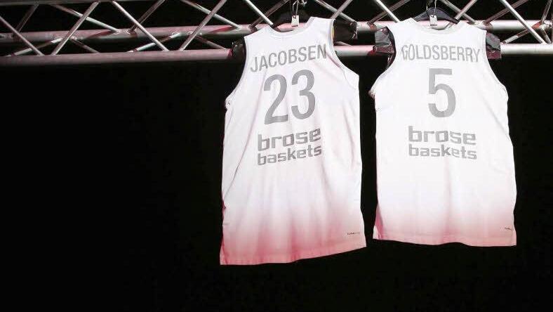 Die Brose Baskets würdigen die Leistungen von Kapitän Casey Jacobsen sowie "General" John Goldsberry - und hängen ihre Trikots unters Hallendach.