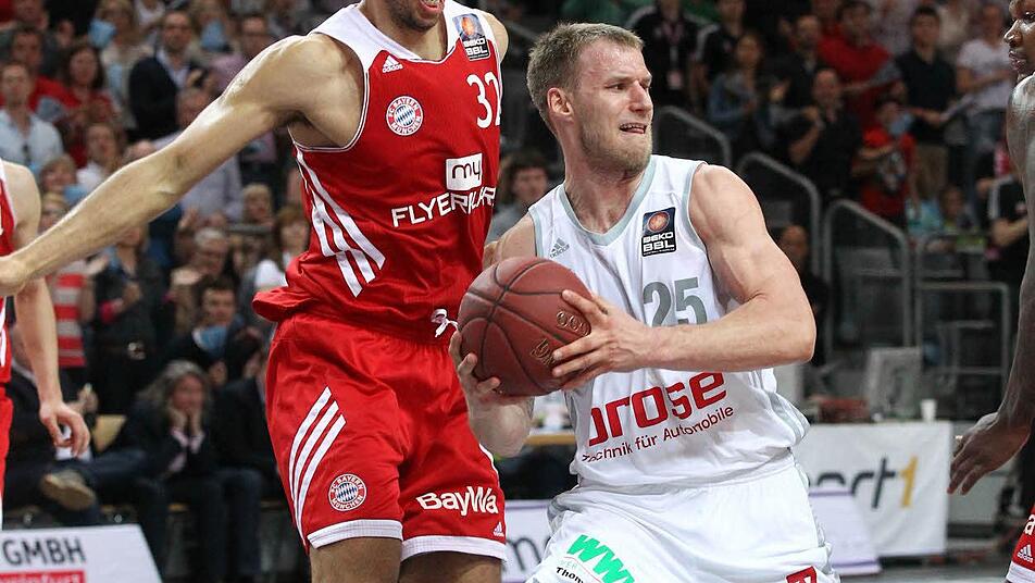 deutschen Meisters zu entscheiden. Doch der Scharfschütze verweigerte den freien Dreier aus der Ecke, den er zuvor drei Mal traumwandlerisch sicher versenkt hatte, zog stattdessen zum Korb und setzte den Mitteldistanzwurf unter Bedrängnis an den Ring. Die Bayern jubelten, feierten den 76:75 (34:40)-Erfolg - die Bamberger standen mit leeren Händen da.