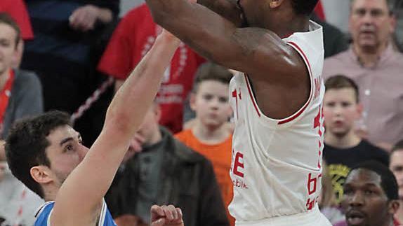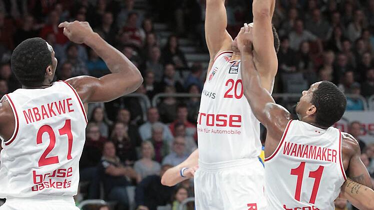 Offensiv-Feuerwerk war schnell vorbei Mit dem Offensiv-Feuerwerk der Hausherren war es aber schnell vorbei. Die Gäste stoppten mit einer Zonenverteidigung den Spielfluss des Spitzenreiters. 10:9 und 13:19 lauteten die mageren Ergebnisse der Abschnitte 2 und 3 aus Sicht der Brose Baskets. Und nach 35 Minuten waren die Gäste bis auf 53:59 dran. Doch dann lief der Ball plötzlich wieder, und Janis Strelnieks sowie Dawan Robinson sorgten mit jeweils zwei Dreiern innerhalb von zwei Minuten wieder für klare Verhältnisse.