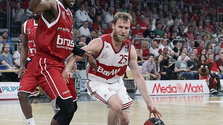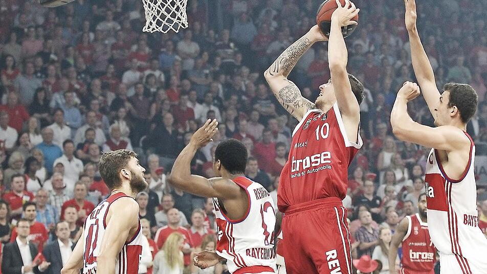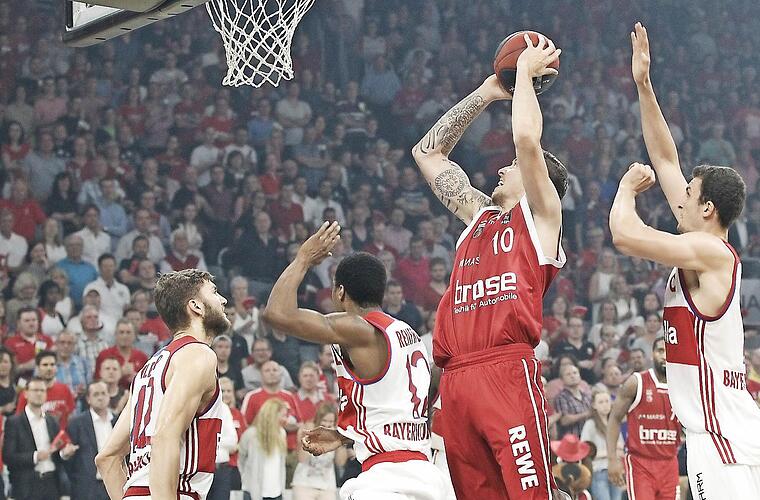 Aber nicht nur für die Akteure gab es viel Beifall: Meisterspieler Rick Stafford und sein von einer Krebserkrankung genesener Sohn Ricky versenkten beim Spendenwurf die Freiwürfe wesentlich sicherer als die Bayern, die in der ersten Halbzeit bei 18 Versuchen nur siebenmal getroffen hatten. Und just als NBA-Profi Dennis Schröder zu Beginn des zweiten Viertels in der Halle eintraf und sich ein Trikot mit der Nummer 10 überzog, verwandelte sein Kumpel Daniel Theis einen Dreier.