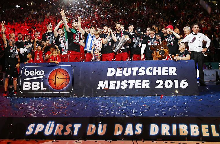 Bamberg, am Sonntag, 12. Juni 2016, um 16.39 Uhr ist es soweit: Die Brose Baskets feiern die sechste deutsche Basketball-Meisterschaft in den letzten sieben Jahren - insgesamt den achten Titel in den letzten elf Jahren. Damit ziehen die Asse aus der Basketball-Hauptstadt in der Liste der Bundesliga-Champions mit Alba Berlin gleich. Rekordmeister sind die Bayer Giants Leverkusen mit 14 Titeln seit dem Start der Bundesliga 1966/67 - werden die Meisterschaften davor mitgezählt, steht zudem der USC Heidelberg mit neun Titeln vor Berlin und Bamberg. Allerdings holten Berlin und Bamberg ihre acht Erfolge jeweils in nur elf Jahren (Berlin: 1997 bis 2008, Bamberg: 2005 bis 2016) und damit schneller als jeder andere Klub der Bundesliga-Geschichte.