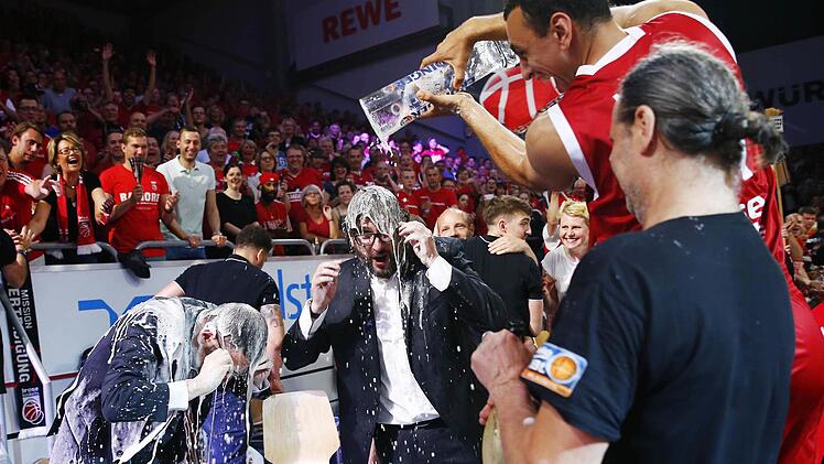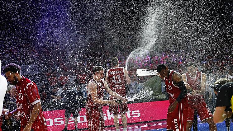 Nach der Schlusssirene verwandelte sich die Spielfläche der Brose Arena, auf der die Bamberger in dieser Bundesliga-Saison von 23 Partien 23 gewonnen und auch die europäischen Schwergewichte in die Schranken gewiesen hatten, nach den Sekt- und Bierduschen in ein spiegelglattes Parkett.