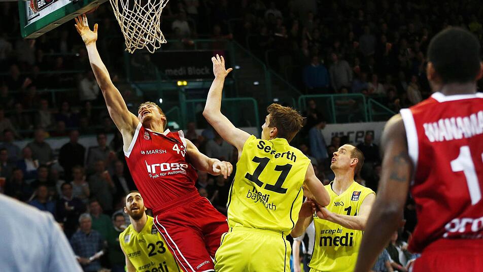 Drei Tage nach der "magischen Nacht" und dem "historischen Sieg" (Andrea Trinchieri) gegen ZSKA Moskau in der Euroleague machten die Bamberger im Oberfranken-Derby in Bayreuth von der ersten Sekunde an deutlich, dass sie den 18. Sieg in Folge unbedingt mitnehmen wollten. Bis auf einen 9:0-Lauf zum Ende des ersten Viertels der Gastgeber war das 71. Duell zwischen Bayreuth und Bamberg eine einseitige Angelegenheit. Der Spitzenreiter setzte sich letztlich deutlich mit 85:53 (44:29) durch und wird mit ziemlicher Sicherheit als die Nummer 1 in die Play-offs gehen. Die Mannschaft von Trainer Mike Koch hat keine Chance mehr auf die Play-offs und wird auch mit dem Abstieg nichts zu tun haben.