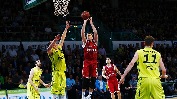 Auch im dritten Viertel bestimmten die Bamberger das Geschehen: Mit einer aggressiven Verteidigung ließen sie die Bayreuther nie zur Entfaltung kommen. Zwei Dreier und zwei Freiwurfpunkte waren die einzige Ausbeute der Hausherren in diesen zehn Minuten. Obwohl auch bei den Brose Baskets nicht alle Würfe fielen, lagen sie nach 26 Minuten erstmals mit 20 Punkten vorn und gingen mit einem komfortablen 61:37-Vorsprung in den Schlussabschnitt.