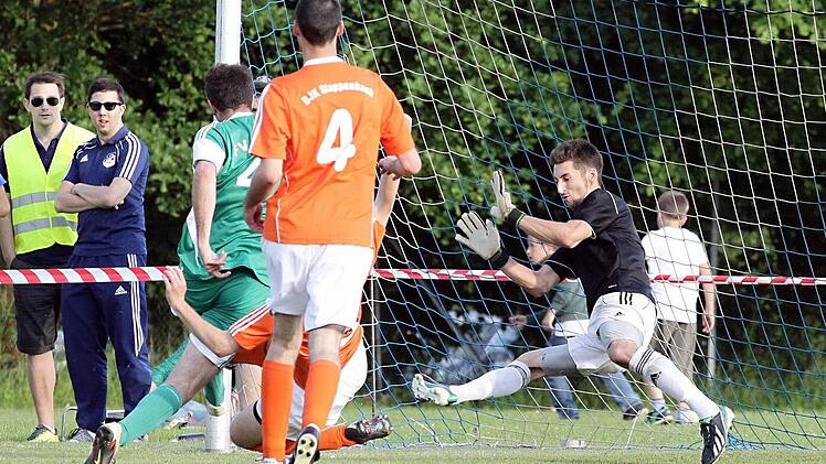 Die DJK hatte durch Remki die erste Chance, die er aber neben das Tor setze. Nach einem Abspielfehler und dem daraus resultierenden langen Ball über die Stappenbacher Abwehr schaltete Stefan Diller am schnellsten und hob den Ball über Torwart Wazanini zum 0:1 ins Netz. Das Team von Trainer Manfred Distler war jetzt nervös. Nach einer Ecke hatte der FV die Chance zum 0:2, scheiterte aber am bestens aufgelegten Wazanini. Die nächste Chance für die DJK brachte das 1:1. Ein langer Ball erreichte Florian Wagner, der per Foul im Strafraum gestoppt wurde.
