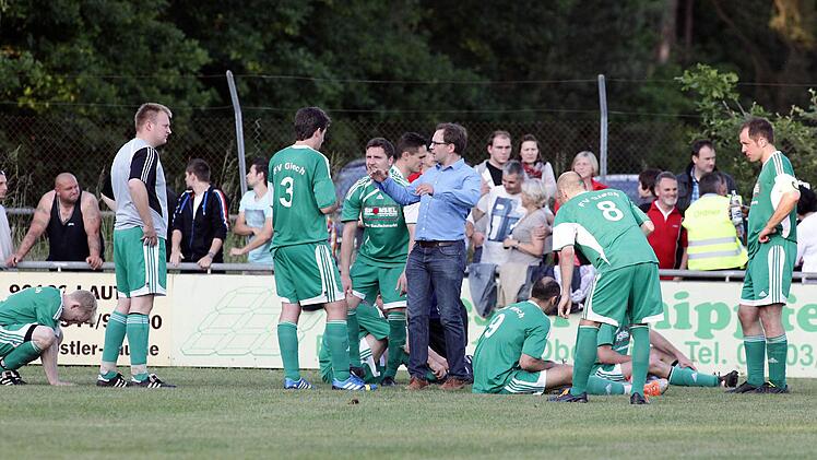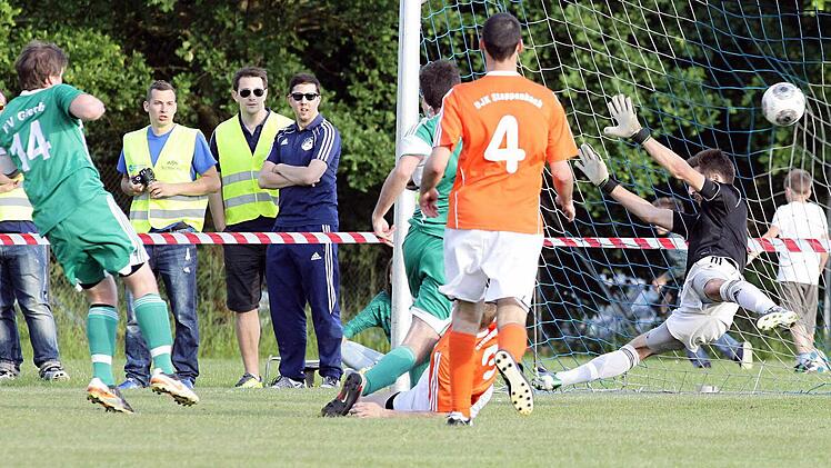 Im Elfmeterschießen begann der FV, Stefan Diller drosch den Ball über das Tor. Florian Wagner verwandelte für die DJK. Giech glich zum 3:3 aus. Patrick Schäfer brachte die DJK wieder in Front. Nun kam der große Auftritt von Fabian Wazanini im Stappenbacher Tor, als er den nächsten Giecher Elfmeter parierte. Steffen Denzler erhöhte auf 5:3. Der folgende Elfmeter war wieder eine sichere Beute für Wazanini.