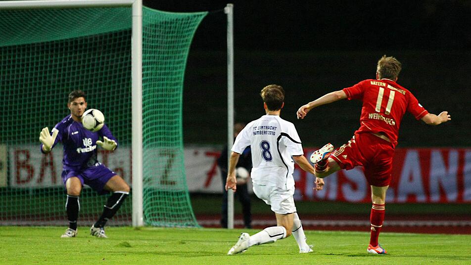Minute zwang Weihrauch nach einem Zuspiel von Tobias Schweinsteiger den Bamberger Schlussmann zu einer zweiten Glanzparade. Im Anschluss blieben die Münchner zwar überlegen, die letzten Pässe in die Spitze waren aber nicht präzise. Doch nach 25 Minuten hatten die "Violetten" ihren Respekt abgelegt und zeigten durch Florian Pickel und einen leicht abgefälschten Freistoß aus gut 30 Metern von Johannes Bechmann viel versprechende Ansätze.