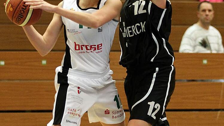 Nach kleineren Anlaufschwierigkeiten haben die Basketballerinnen der DJK Brose Bamberg das erste Spiel des neuen Jahres in der 2. Liga Süd souverän gewonnen. Vor rund 250 Zuschauern in der Graf-Stauffenberg-Halle setzte sich die Mannschaft des Trainergespanns Ulf Schabacker und Walter Tadda am Samstag mit 71:40 (35:20) gegen die SG 1886 Weiterstadt durch. Nach einem offenen ersten Viertel bauten die Gastgeberinnen ihren Vorsprung stetig aus, der mit dem letzten Wurf der Partie seinen höchsten Wert erreichte.