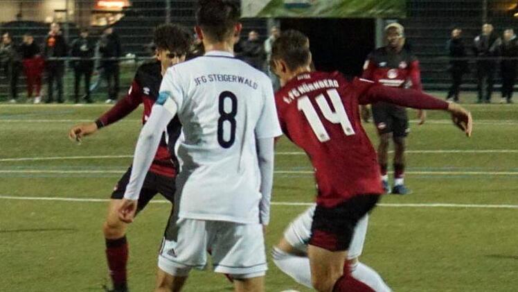 Einen unvergessenen Fußballabend erlebten die 200 Zuschauer am Mittwochabend am Kunstrasenspielfeld des TSV Burgebrach. Das U19-Bayernliga-Team der JFG Steigerwald besiegte im U19-BFV-Pokal den haushohen und fast in Bestbesetzung angetretenen Favoriten FC Nürnberg mit 3:2 (1:1).