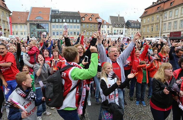 Wir berichten ab 14.30 Uhr vom Public Viewing auf dem Maxplatz in Bamberg. Außerdem sind wir natürlich in der Halle, damit Sie nichts vom Spiel verpassen.