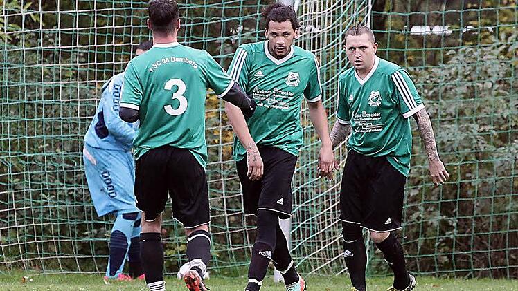 Nach schöner Vorarbeit von Daniel Zinnecker gelang Leon Porter die erneute Führung der Gastgeber. In einer verrückten ersten Halbzeit kam der TSV nach einem Abwehrschnitzer der Heimelf durch den immer stärker werdenden Maximilian Schug zum 3:3. In der 54. Min. markierte Schug die 4:3-Führung für die Gäste. Aufgeben kam für die Hausherren nicht in Frage. Sie rappelten sich auf und stemmten sich gegen die drohende Niederlage. Roland Tornau setzte sich in der 77. Min. auf der linken Seite durch, sein Abschluss kam vor die Füße von Daniel Hütter, der den Ball aus kurzer Distanz zum 4:4 über die Linie drückte. Sechs Minuten vor dem Schlusspfiff gelang Waldemar Wasinski nach Vorarbeit von Daniel Hütter in einem denkwürdigen Spiel der viel umjubelte 5:4-Siegtreffer für die Bamberger.