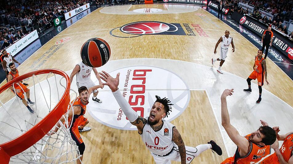 Vier Spiele gegen spanische Mannschaften - vier Siege: Die Teams von der iberischen Halbinsel liegen den Bamberger Brose-Basketballern. Nach den Erfolgen in Malaga, gegen Vitoria und dem Triumph in Nürnberg gegen den FC Barcelona setzte sich die Mannschaft von Trainer Andrea Trinchieri am Donnerstagabend nach einem irren Comeback auch gegen den spanischen Titelträger Valencia Basket mit 83:82 (41:47) durch und bleibt in der Euroleague nach dem ersten Viertel der Saison mit nun 5:4 Siegen weiter ein Kandidat für die Play-offs.