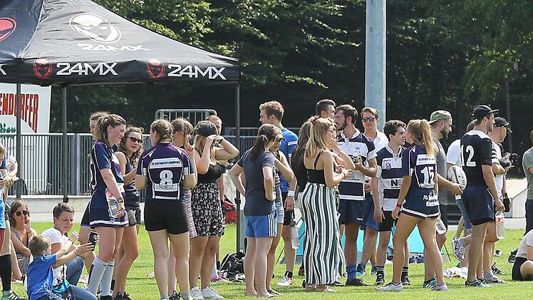 Den ganzen Tag ging es heiß her - nicht nur wegen der 30 Grad. 14 Herren-Teams und vier Damen-Mannschaften kämpften um den Turniersieg. Dabei war deutlich der Rugby-Spirit zu erkennen: Die Teams waren mehr als nur Kontrahenten auf dem Spielfeld. Abseits des Feldes saß man zusammen, fachsimpelte und feierte. Und wenn ein Team mal unterbesetzt war, half man sich gegenseitig aus. Dass es im Anschluss gemeinsam auf die Sandkerwa ging, war da nur naheliegend.